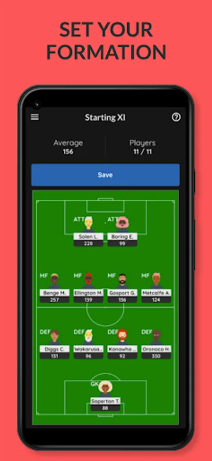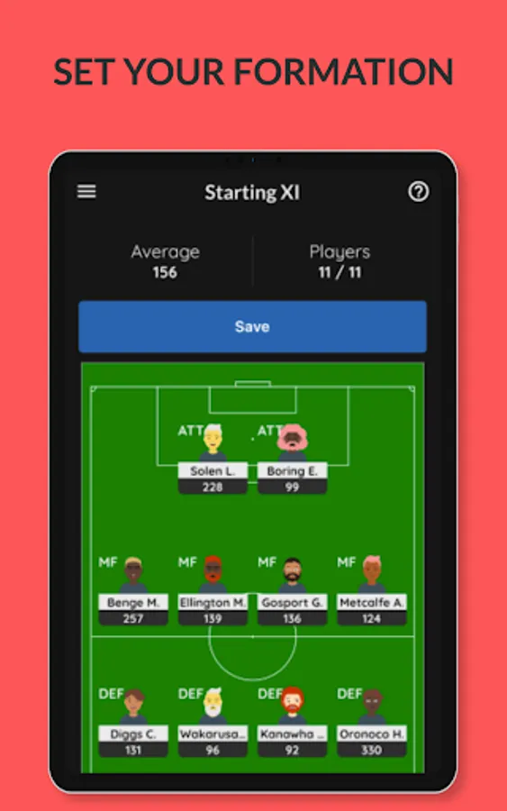 Create your own formation and starting eleven with the best intentions in mind. Do you have an easy game coming up and want to rest your players? You can do it. Have a game against the best football team in the world? You better make sure to get your best soccer players ready.