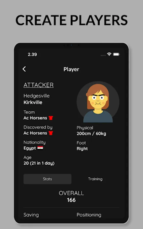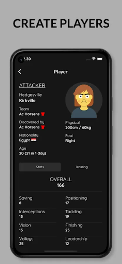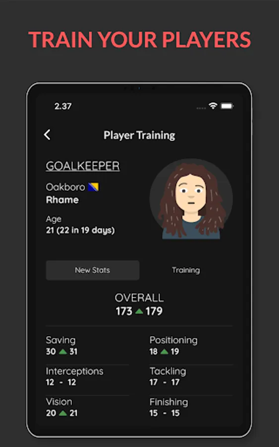 With a state-of-the-art player creation system, not a single player will ever be the same. Every player is unique and has different potential, looks, stats and field position. Some players might not have the best starting stats, but has a huge potential to become a wonderkid. Remember to train your football squad daily and maybe you will see that the bad player, suddenly is world class when he comes of age.