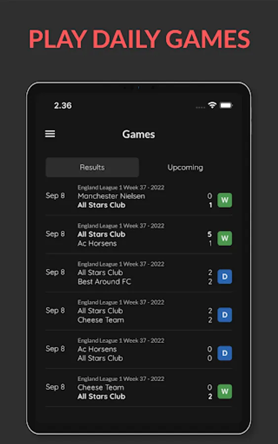 Please Note: MyFootballManager is free to download and play, however, some game features and removal of ads can also be purchased for real money.