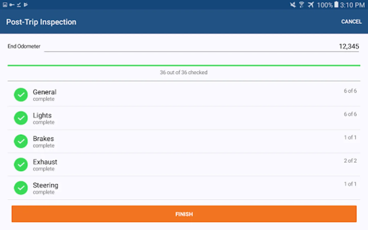 The ENCOMPASS® DVIR application offers a standalone solution for managing vehicle maintenance and upkeep, including options to customize vehicle inspection criteria according to a fleet’s specific vehicle types. The app also offers an intuitive model for setting up and reviewing pre- and post-trip inspection records, as well as a time-tracking functionality for non-regulated drivers and personnel to record on and off duty time. Drivers can easily submit inspection and time records to the back office, increasing management awareness of completed inspections and any necessary unit maintenance.