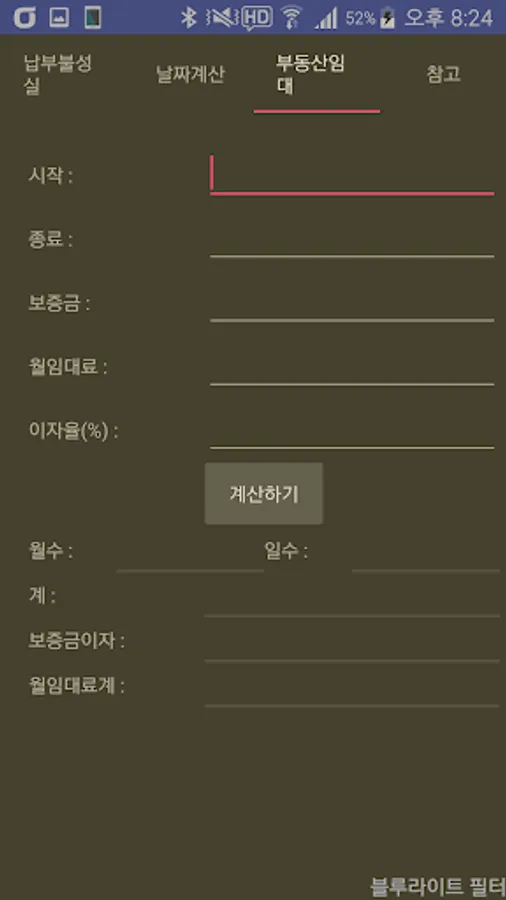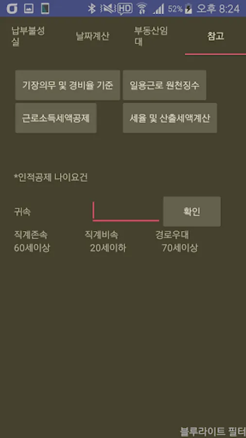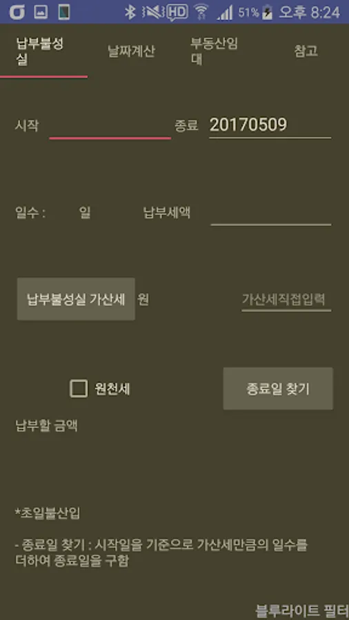 Pay penalties insincere, date calculations, property leasing VAT tax base calculation, millet gyeongbiyul obligations and standards, daily working withholding calculation, calculate earned income tax credit, tax rates and tax calculation, such as calculating