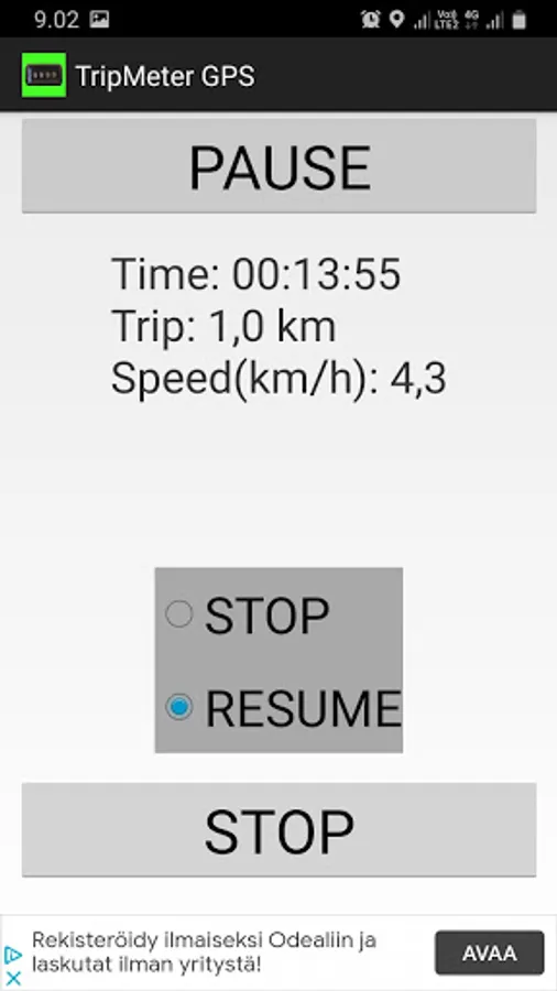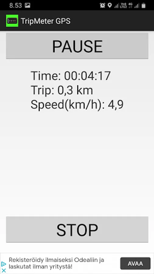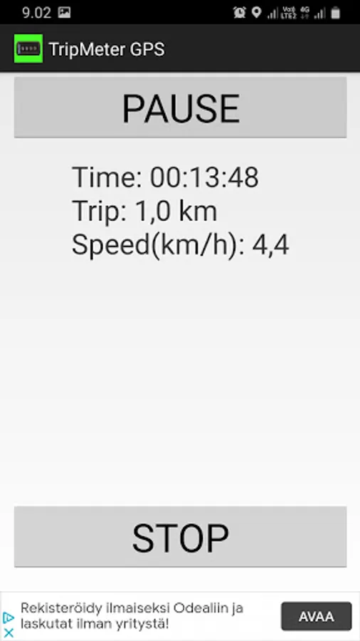 TripMeter GPS shows used time, distance and average speed from a starting point. Easy to use even in a one hand.