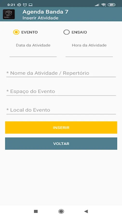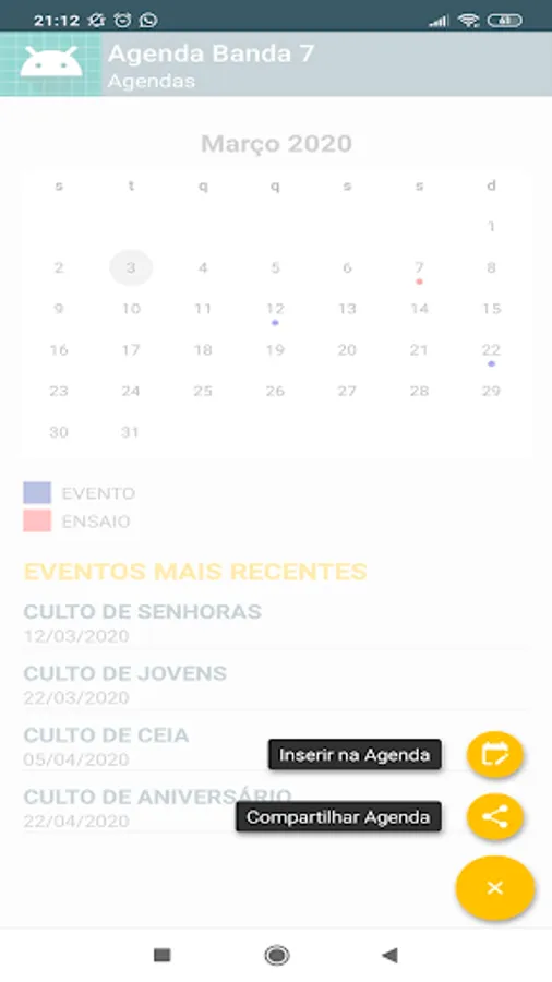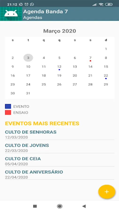 Band 7 calendar management app, with this application it is possible to insert and organize the events and rehearsal schedules of band seven in Sobral-CE