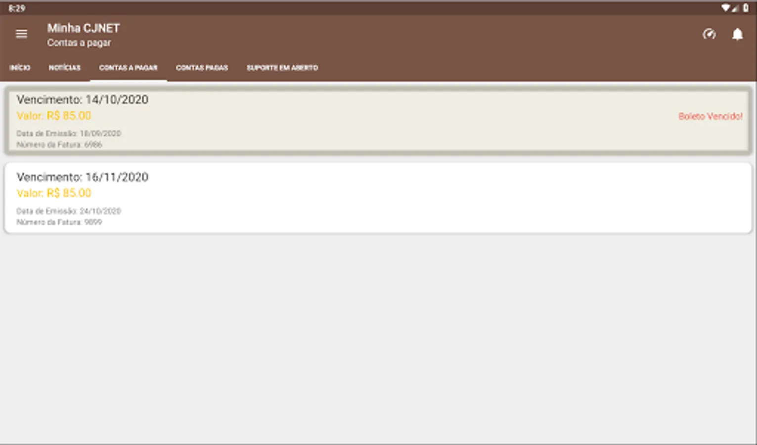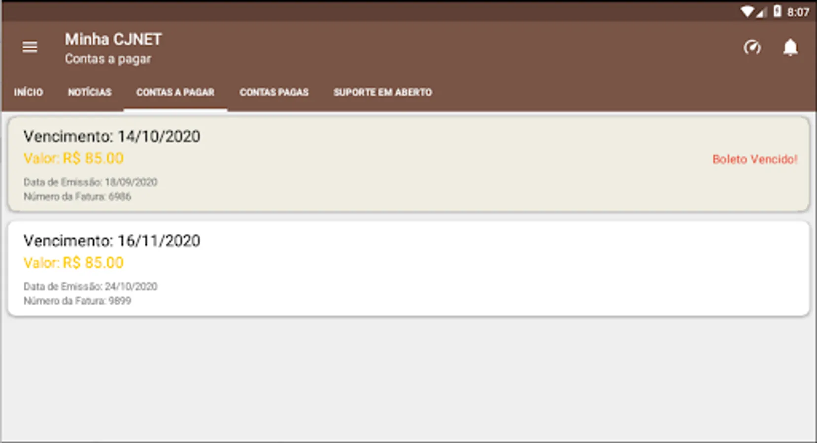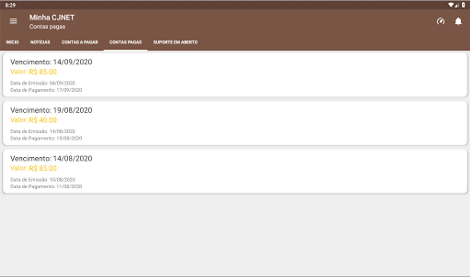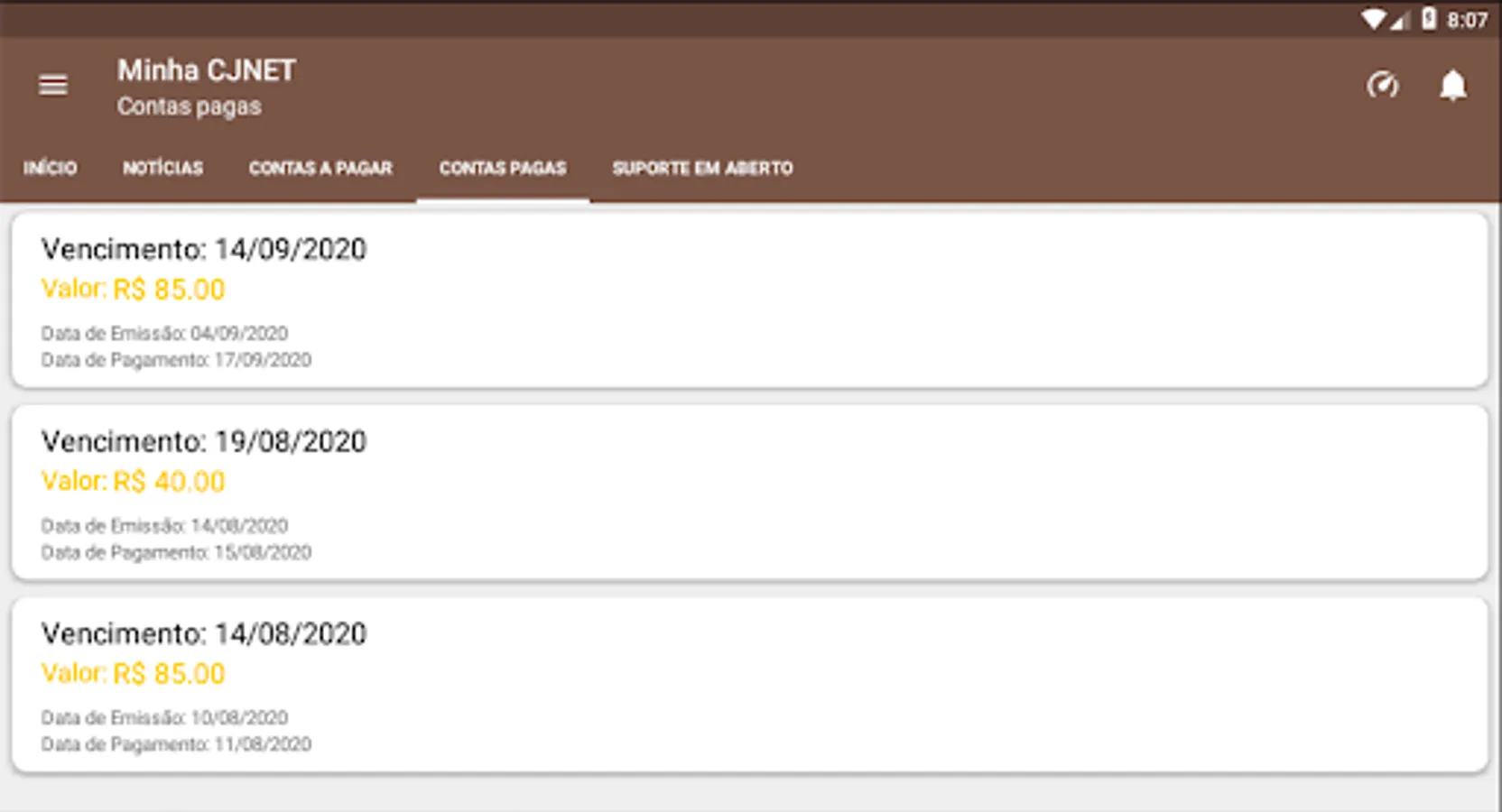 With this APP it is possible to view and download slips, see open supports, see connection and contact the provider CJNET TELECOM