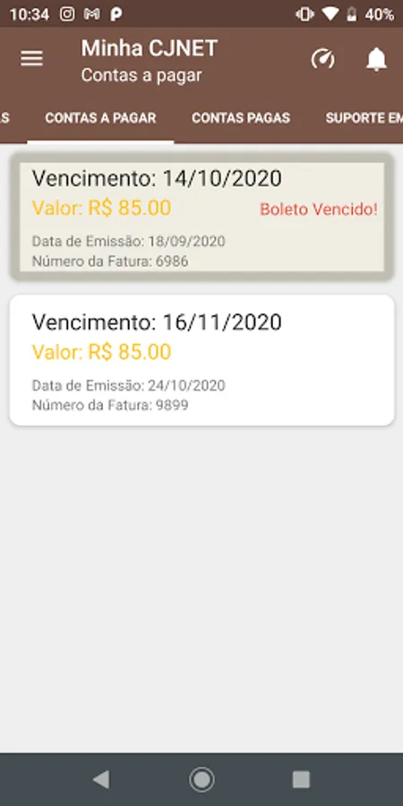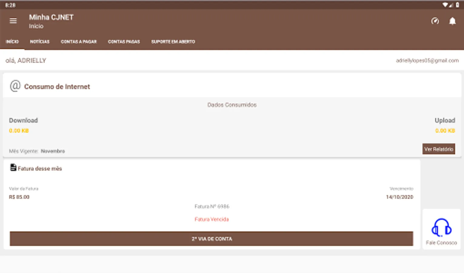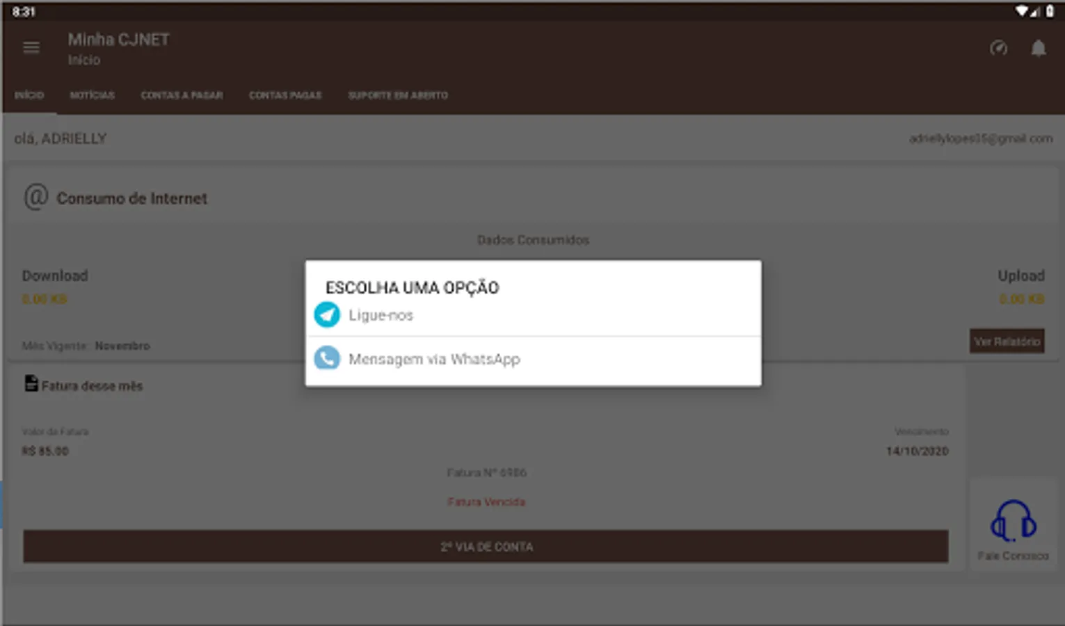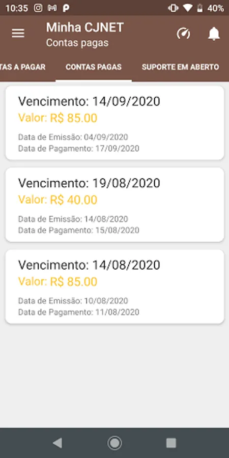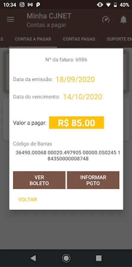 With this APP it is possible to view and download slips, see open supports, see connection and contact the provider CJNET TELECOM