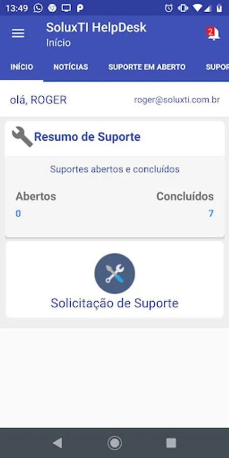 With this App it is possible to request support for the company SoluxTI, See open and closed supports, receive news, thus having a good interaction of the progress of the requested activities.