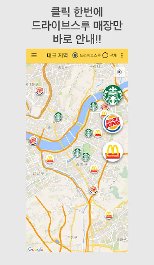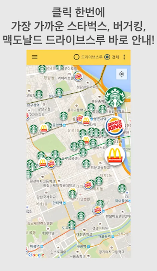 Nationwide Starbucks, Burger King, and McDonald's nearest drive-through stores are just a click away!