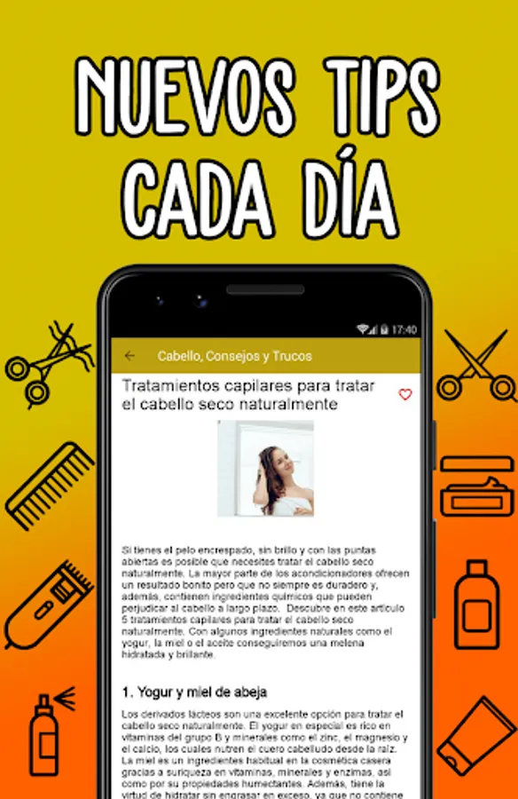 🚺 One of the most useful things you can find in this application are tutorials. If you want to know how to hydrate hair this application offers you in detail the best ways to do it, what products to use and how to work with different hair types. You can also learn how to grow hair which can be very useful for those who begin to suffer from baldness or similar problems.