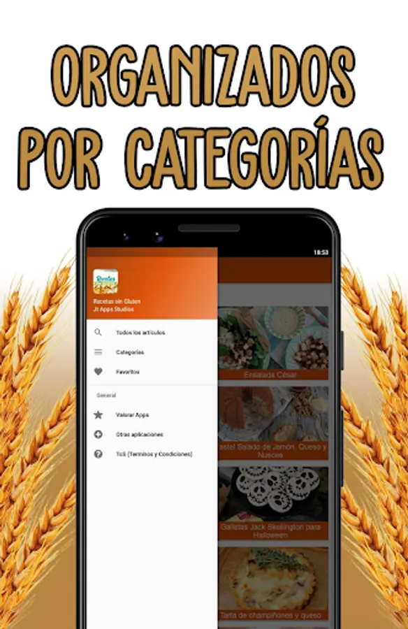 🥨 This recipe application for celiacs has a very comfortable and intuitive interface that will allow you to find delicious recipes organized in comfortable categories. Just select one of these categories to start exploring the wonderful world of gluten-free cooking. Some of the recipe categories that you can find are: