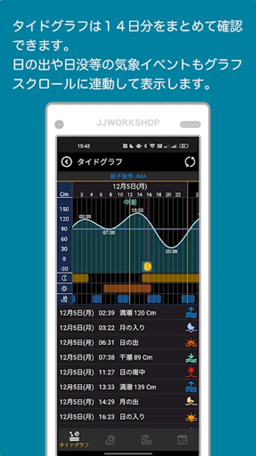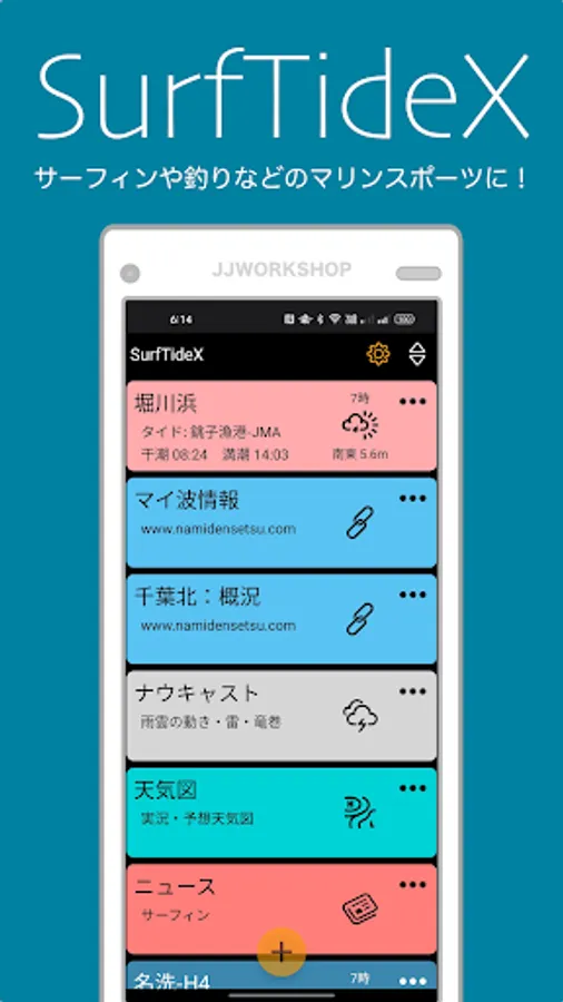 "SurfTideX" is an application that can display tide graphs and wave/weather information for marine sports such as surfing and fishing. Please use it to accompany marine sports.