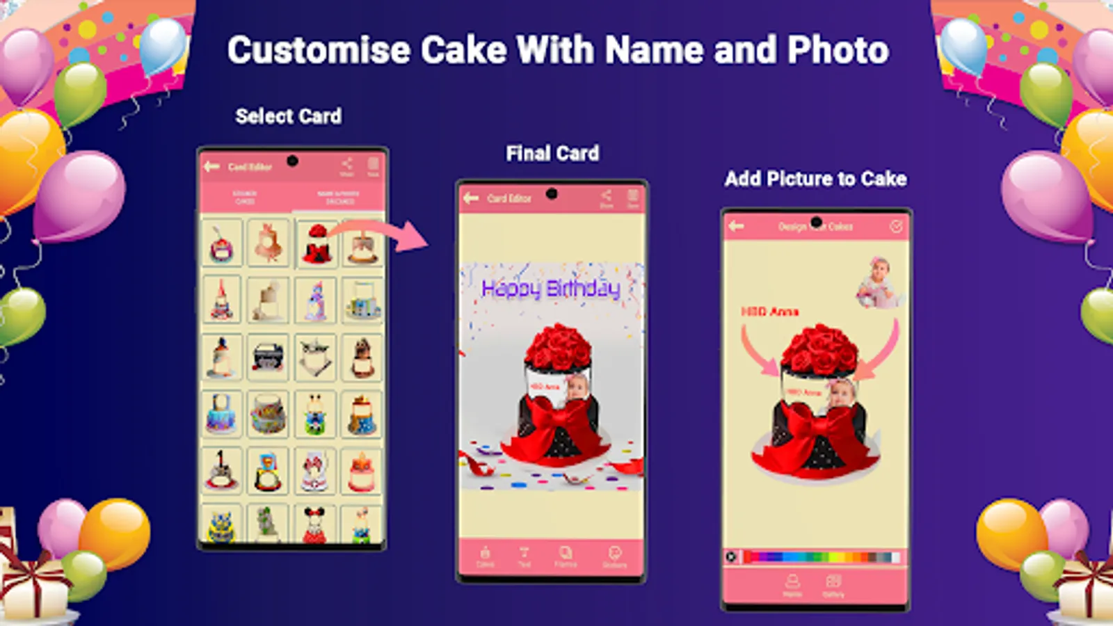 Send Birthday Wishes to your friends and family with "Name & Photo” on Birthday cake".