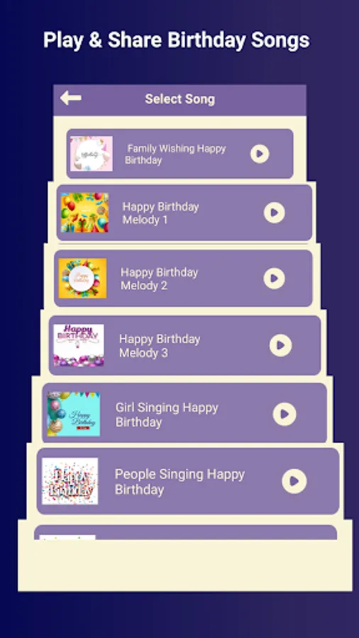 Happy Birthday song is a great way to celebrate your birthday. There is a traditional way to sing "Happy Birthday" song. It offers Latest and trending collections instrument music like piano, Drum, Flute, guitar birthday songs, popular birthday songs, pop music, group music that can make you feel happy. Huge collection of happy birthday songs that can be sent to friends and family via social media or apply background song at your birthday party. Moreover you can also select song country wise like Arabic, Chinese, English, Hindi & many more.
