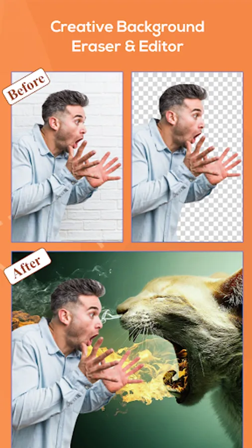 Want to remove or erase background of photo and change background? Do you want to clear background of photo and add natural scenes, flower and animals? Remove item from photo, use magic eraser, delete background and add color picture backgrounds by using bg remove background app. background transparent is a smart automatic background changer app with photo bg remover or bg eraser with beautiful user interface and a lot of options for photo editing your photos to make nice picture backdrops. Background changer app with huge collection of photo backgrounds to make your pictures like a real creator with our collection of cool, aesthetic, HD wallpaper backgrounds with 1 tap. Moreover, the app inherits a professional photo editor toolbar which permits the user to add text, stickers and frames on their images. Last but not the least you can save your images in an in-app dedicated album and share them with friends & family or on social media via any platform including WhatsApp, Instagram, Facebook, Twitter, Snapchat & Tiktok.