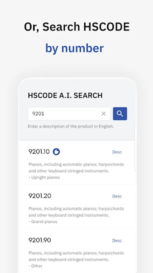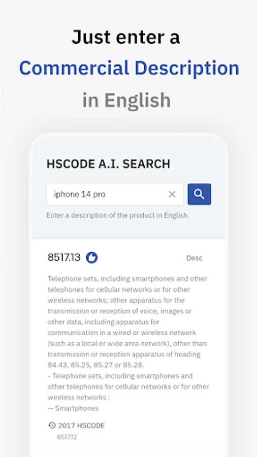 Pre-trained A.I. The engine recommends HSCODE suitable for import and export products.