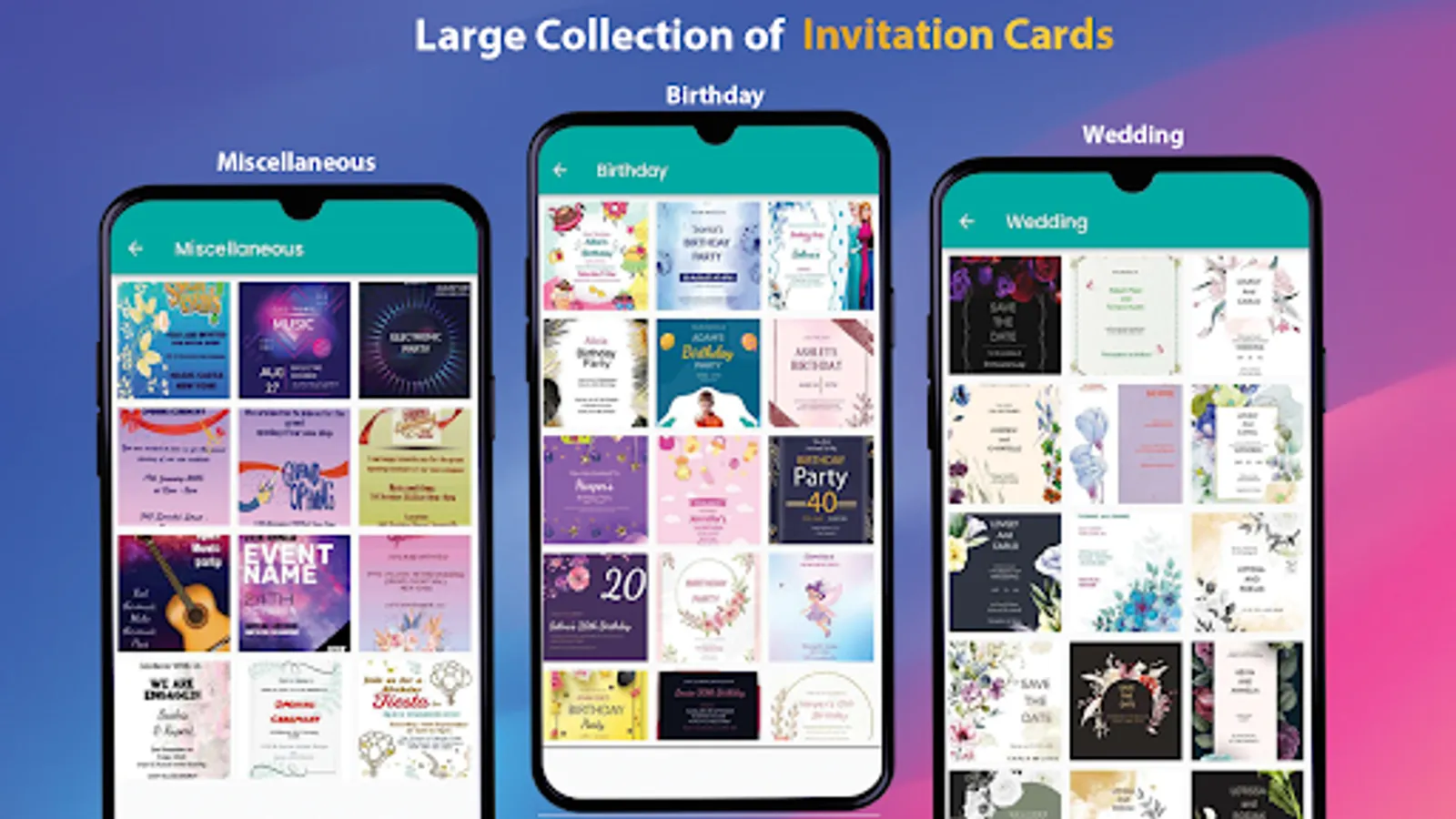 Our greeting card designer app not only include cards for wishing sentiments but also includes templates to invite your loved ones and friends on your special occasions. You can custom design your Invitational cards for Wedding, Engagement, Ceremony, Bachelor, BBQ, Cocktail, Dinner, Reunion, Graduation, Housewarming and Pool Party.