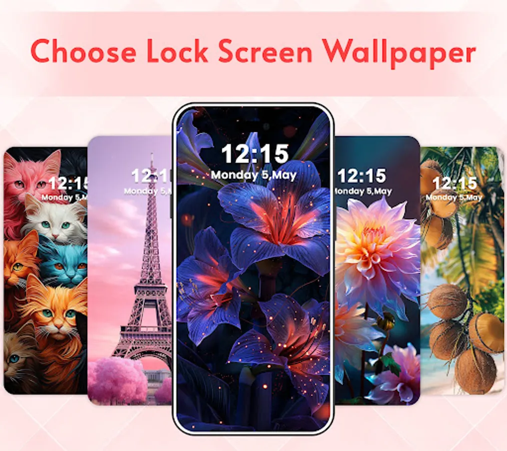 Furthermore, the photo lock screen app includes a vast collection of backgrounds for your touch screen lock in wallpaper. Choose from a wide variety of stunning images to personalize your touchlock screen, making it not only secure but also visually appealing. With numerous options to suit your style, you can easily find the perfect wallpaper to enhance your device’s look.