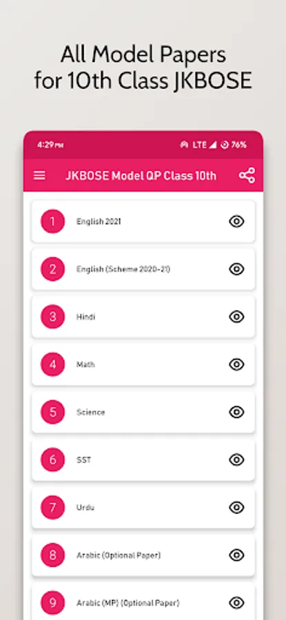 The app includes Model Question Papers for following topics: