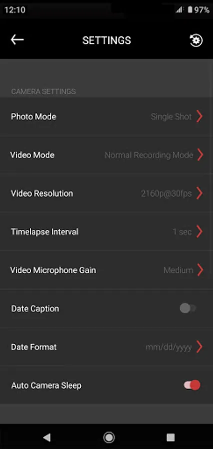 The Kenwood Camera App allows riders to adjust many of their camera’s settings instantly, within the app. The settings that are accessible within the Camera App include changing the video mode, between video and loop recording mode, changing the video resolution settings, and changing the level of the speaker sound recording. Riders may also easily adjust the WiFi settings, format their SD card, put the camera in sleep mode, or adjust the date caption all within the App.
