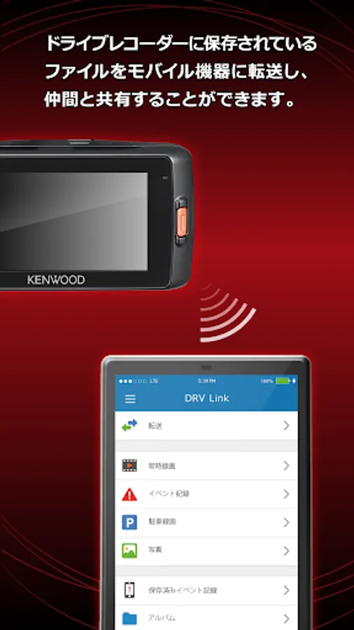 KENWOOD DRV Link app is, for sharing the video recorded during the drive, the local-based social network integration application.