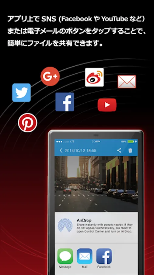 - You can easily share still images and movies captured in App on social networks such as Facebook and YouTube.