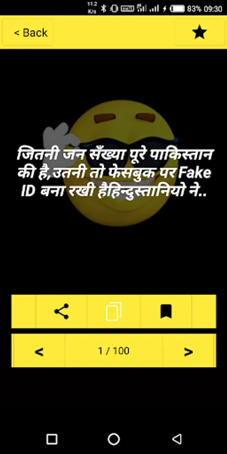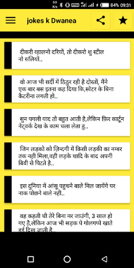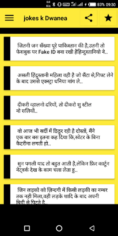 If you find a joke you really like, you can use the Share button to share it through your favorite instant messaging and social networking apps. Not only this, you can also send these jokes through SMS or via email. So basically, you can share the jokes through any program or app of your choice.