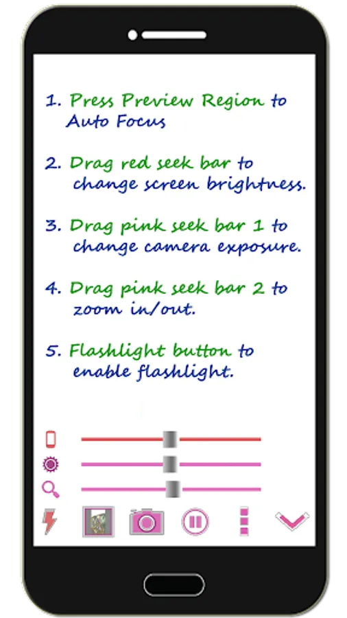 3. Drag pink seek bar 1 to change camera exposure.
