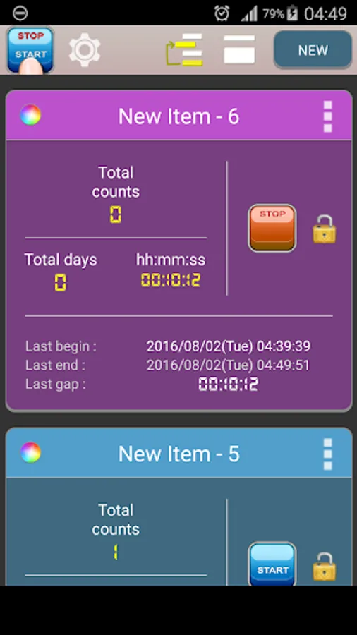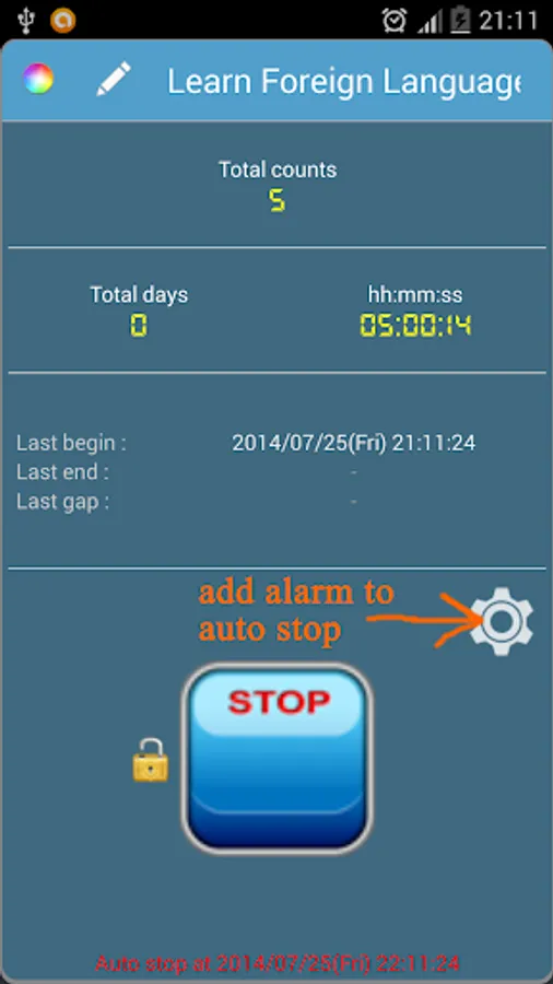 After pressing the "start button" and "stop button", the time duration will be recorded. (You can set the alarm to stop automatically.)