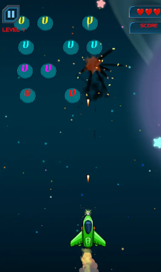 In a retro attack and space shooter, you need to control the spaceship by tapping and dragging. But, the space shooter learning game is not easy. The letters can appear from anywhere and fast. Especially in the harder levels. Avoid obstacles at all costs and try to shoot letters as long as possible before losing the 3 hearts.
