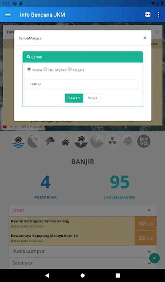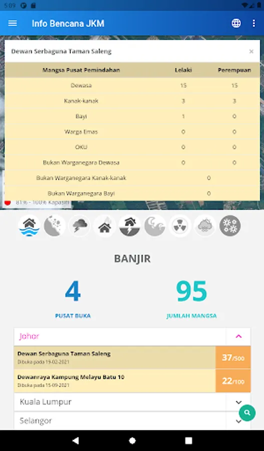 Get information such as the Disaster Relief Centres;