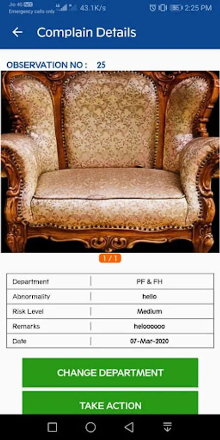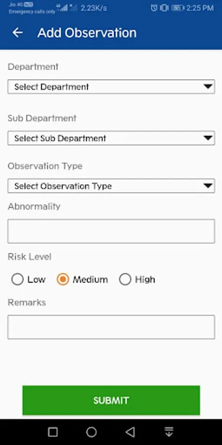 SafetyApp is for the employees of JK Paper Ltd., for the purpose of safety inside the premises of Plant, the prime objective of this app is to capture real time situations, Near Miss Act, Unsafe Conditions etc and send it to concern authority. Once the condition is observed it will be monitored by safety department.