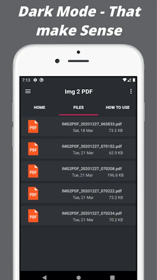 Jpg to pdf converter has light, dark, and default theme. You can use the dark theme at night and others anytime you like. The user manual is also present in the app so you can easily understand the process and start converting img to pdf right away.
