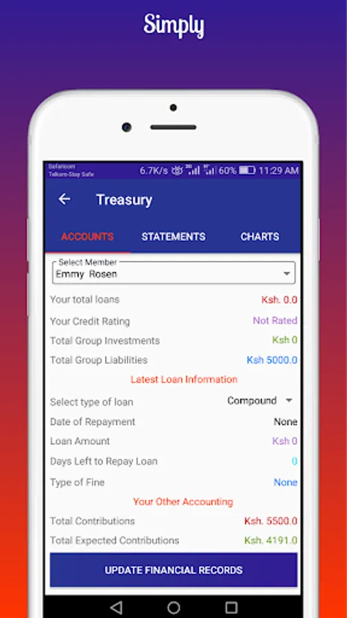 Tabaka handles all financial management tasks in Chamas, such as bookkeeping of member’s investments, loans, and other liabilities. The loan computations required for group loans are automatically done and presented to members. Treasurers are only required to input the data to fulfill their duties.