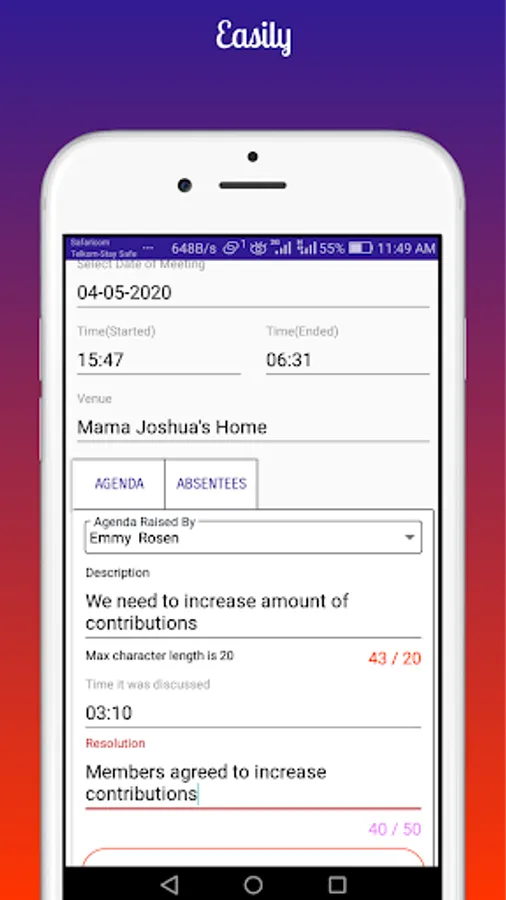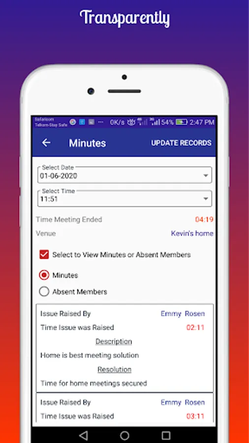 Tabaka transparently handles all official duties often allocated to the officials of a Chama. Members can call for votes of officials, view tabulated and summarized minutes of meetings, and request to join new Chamas within the Tabaka family.