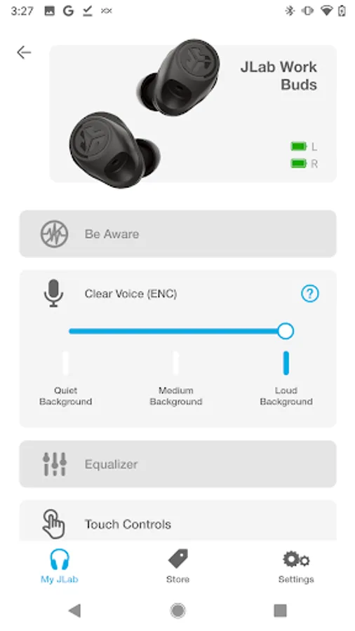Bring the outside in. Use the JLab App to increase or decrease the amount of outside noise you let in by adjusting your Be Aware settings. (For Be Aware Compatible earbuds only)