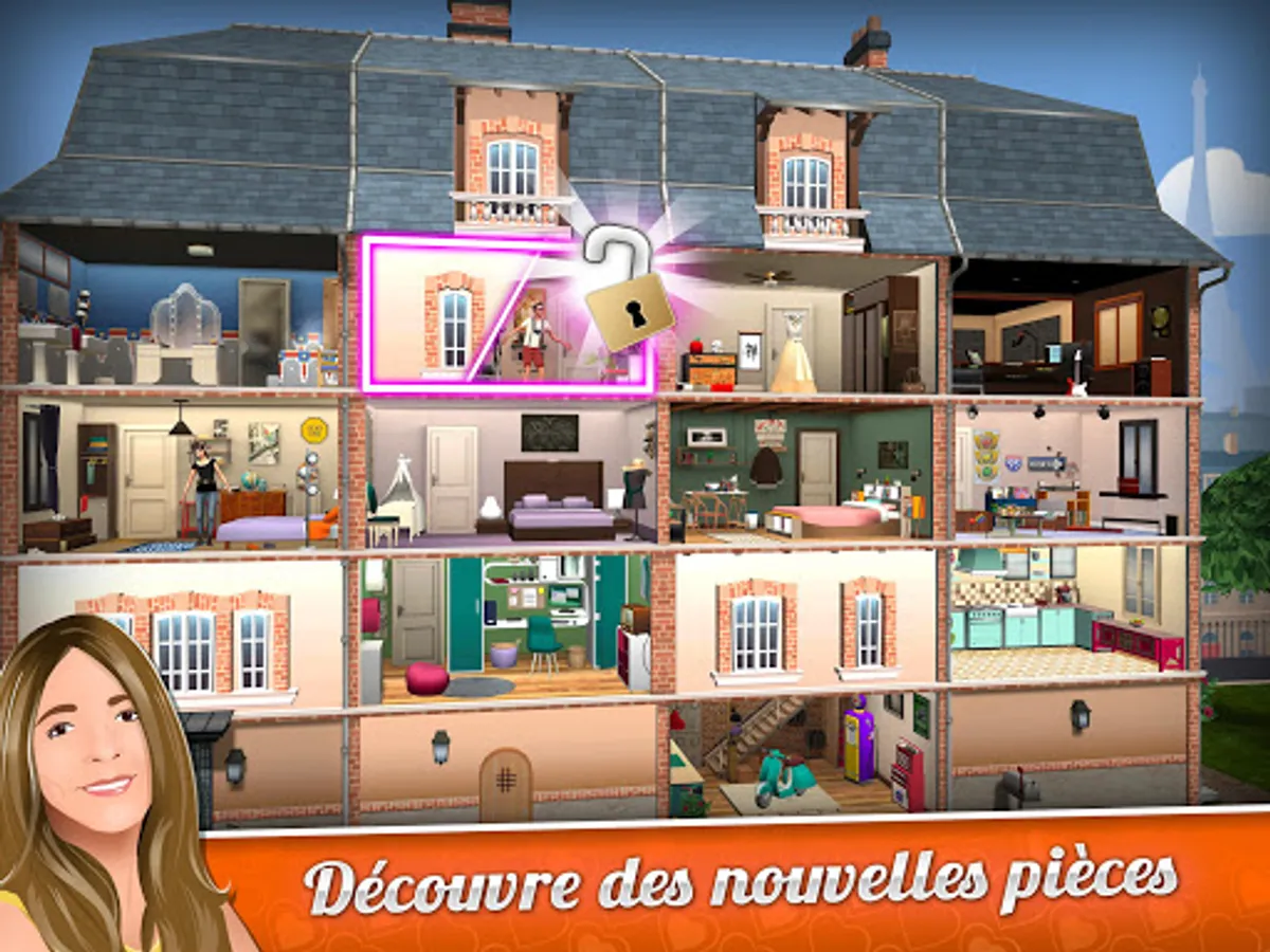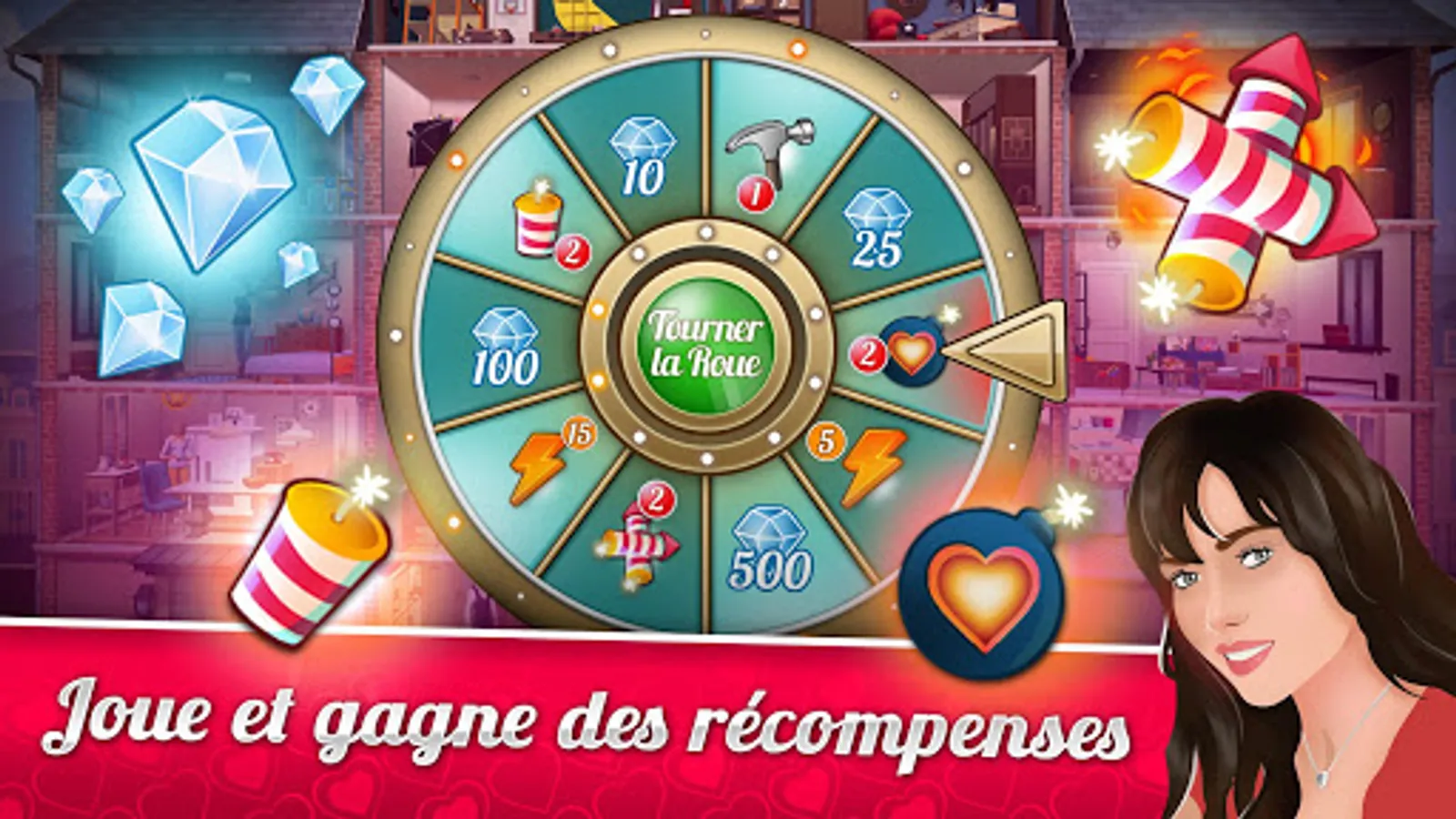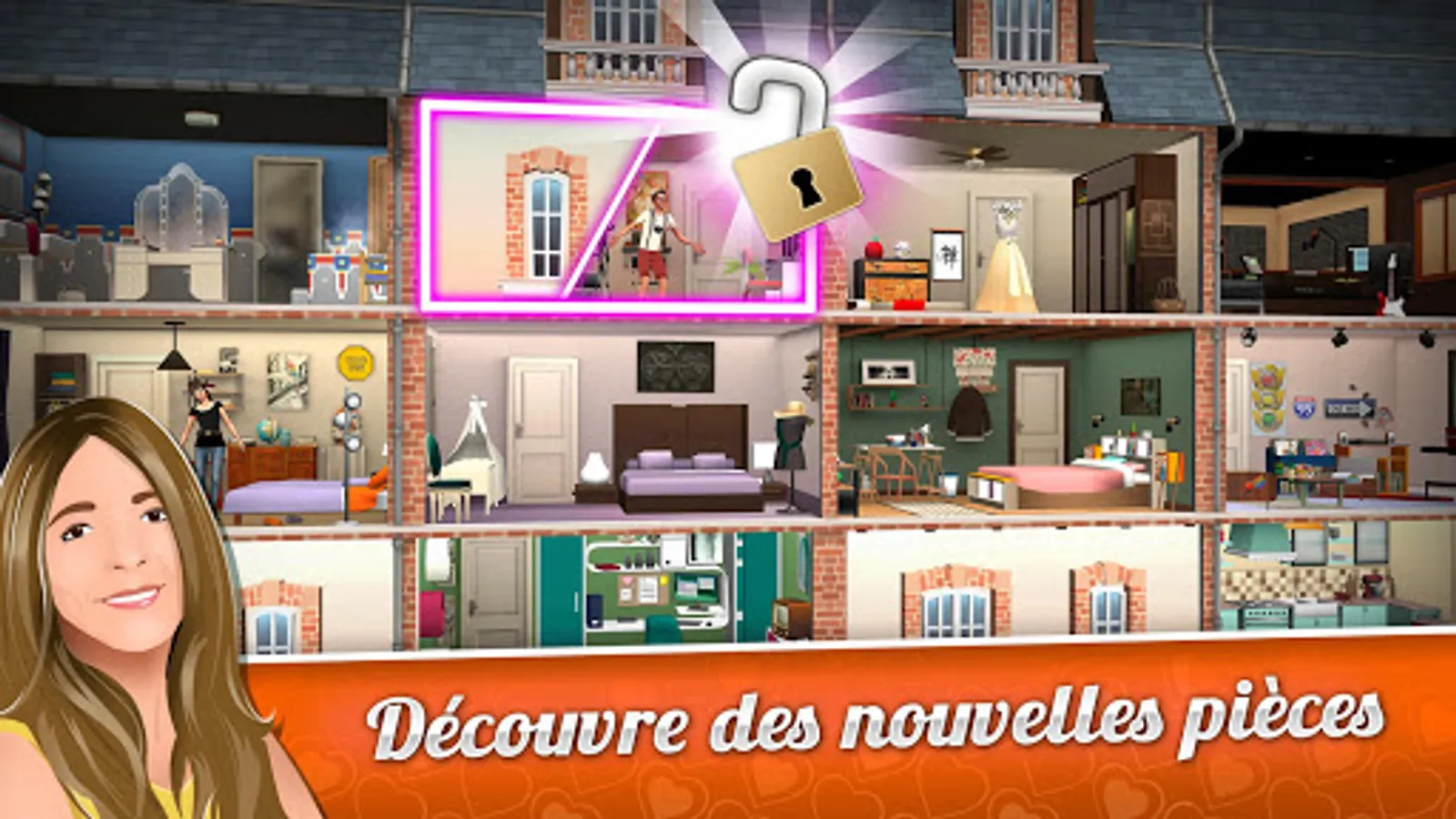 The completed levels can unlock new furniture, even characters like Helen, Nicolas or Fanny! Collect diamonds to get new costumes and new colors for each item unlocked and prepare the house to your taste!