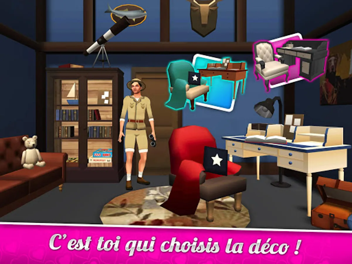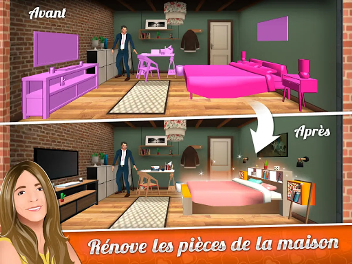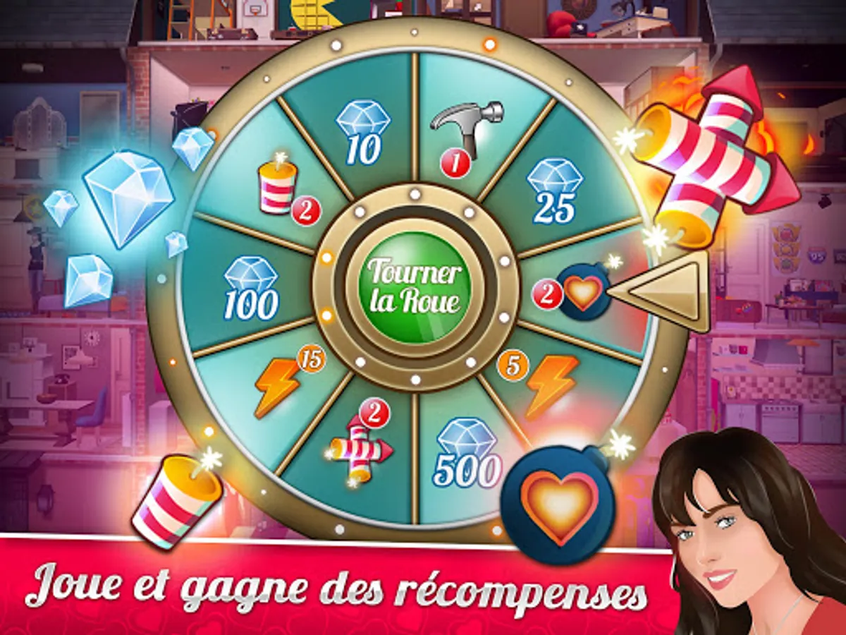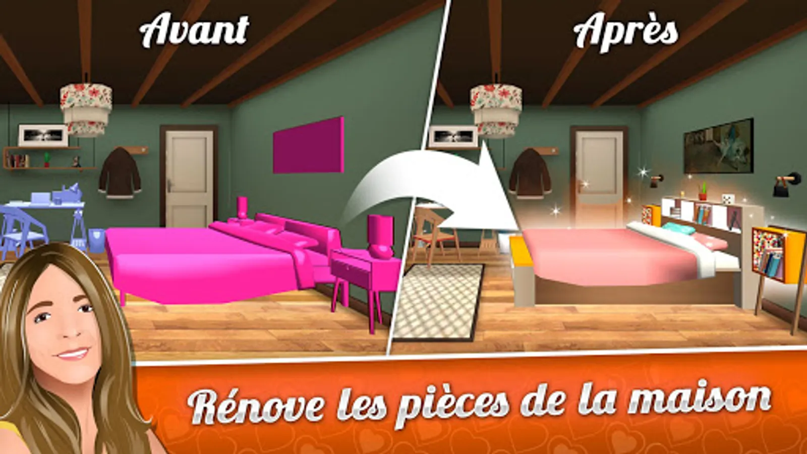 The completed levels can unlock new furniture, even characters like Helen, Nicolas or Fanny! Collect diamonds to get new costumes and new colors for each item unlocked and prepare the house to your taste!