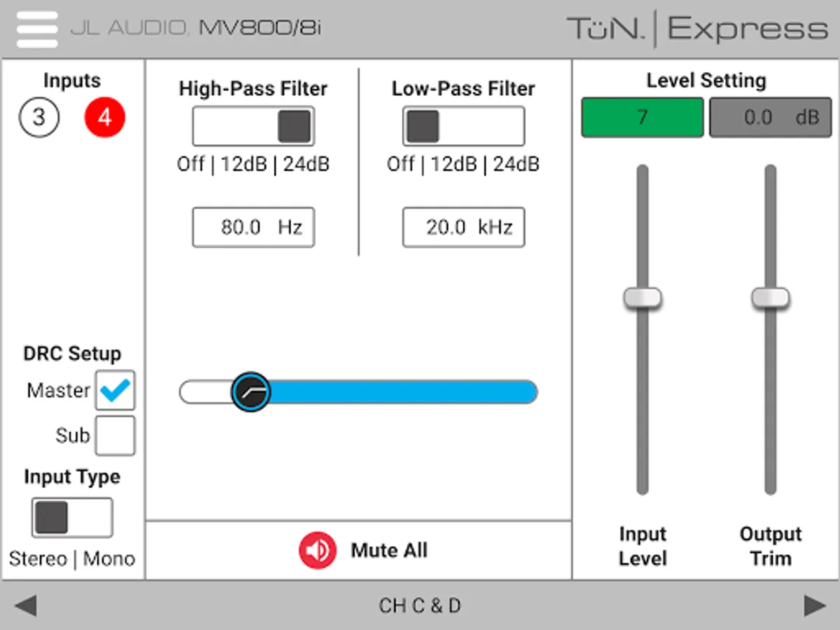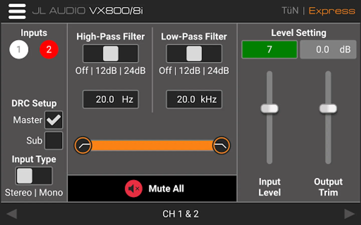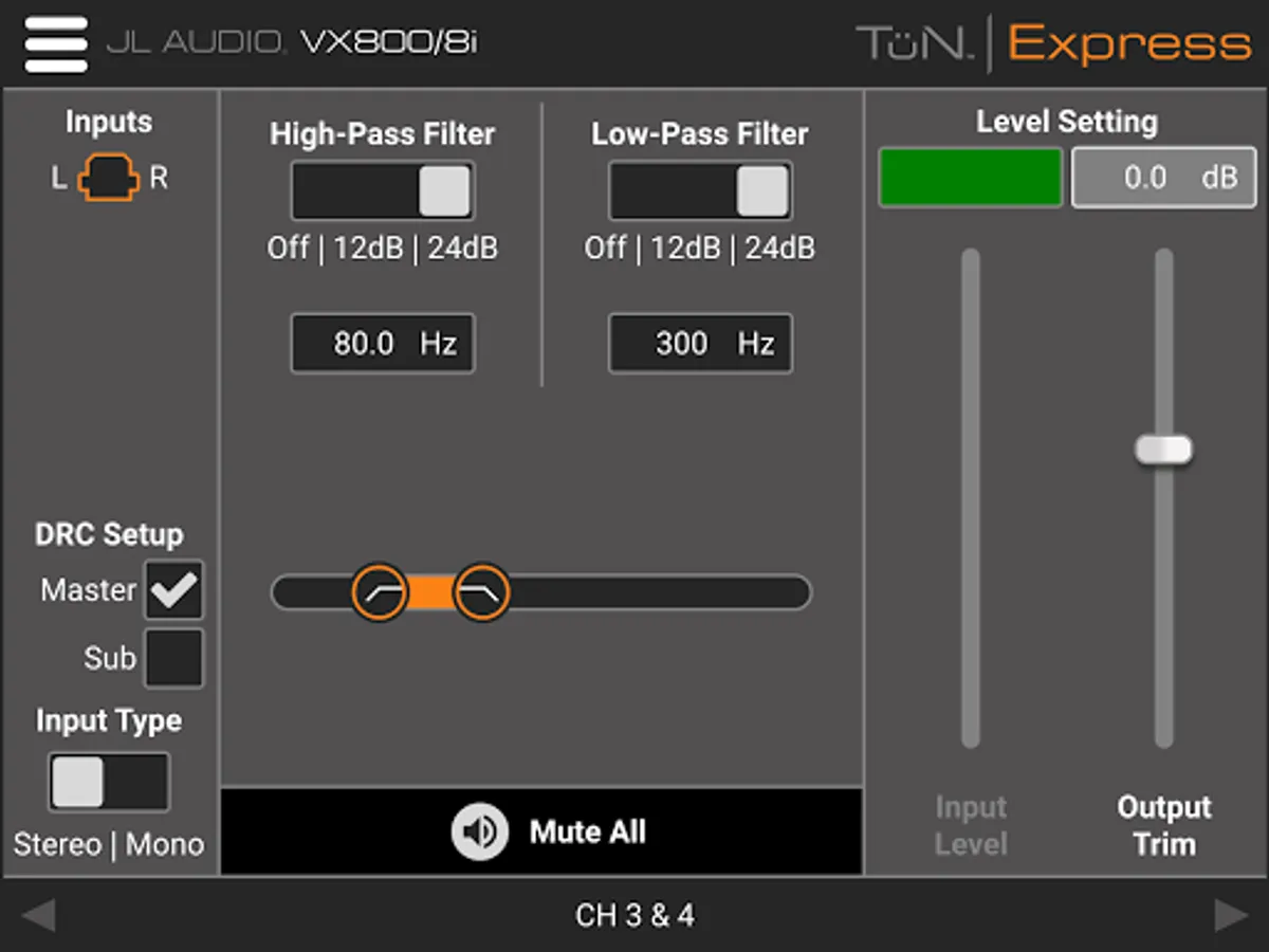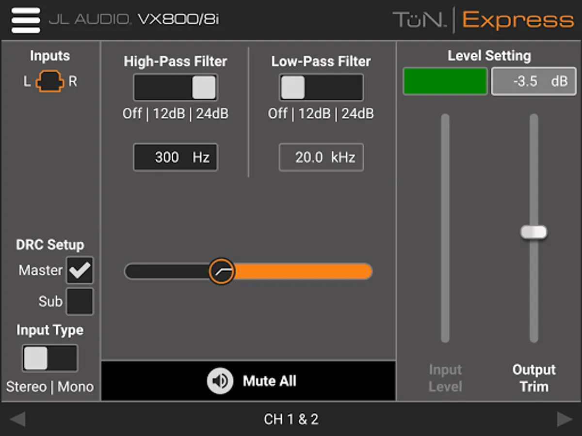 TüN™ Express 3.1 is compatible with JL Audio VXi and MVi amplifiers. It is not compatible with FiX™ or TwK™ processors.