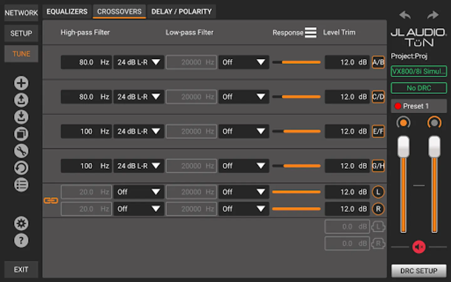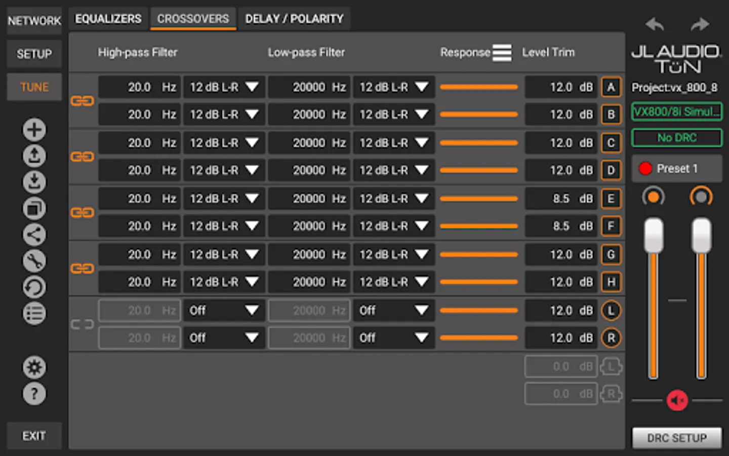 Use your Android tablet to set up and command the complete DSP feature set of a compatible JL Audio DSP-based amplifier, via Bluetooth LE connection. TüN™ Mobile automatically recognizes a compatible JL Audio product and offers a clear user interface optimized for that specific product. A simulation mode is included to simulate any product or perform offline setup.