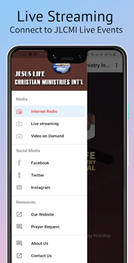 Connect to Jesus Life Christian Ministry International (JLCMI) Live Streaming , Internet Radio, Video on Demand, Facebook, Twitter and many more