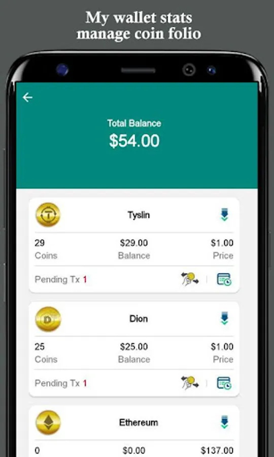 Tyslin multi coin wallet supports the top currencies and allow users to store more than one at the same time. Aiming towards letting user stay on a single platform, and eliminate the need to multitask and switch between cryptocurrency applications.