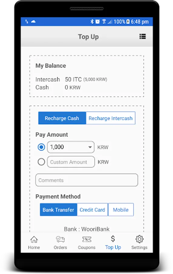 6) Top-up: Get your wallet top-up either in Fiat or in Crypto