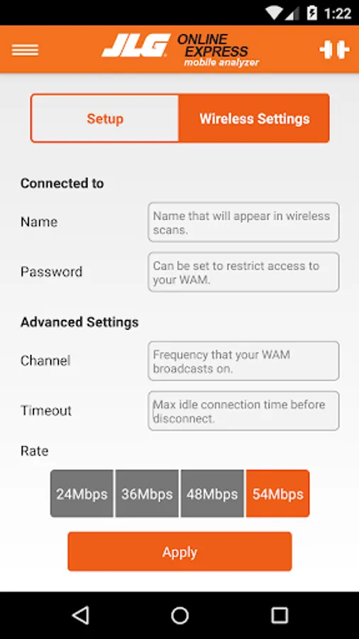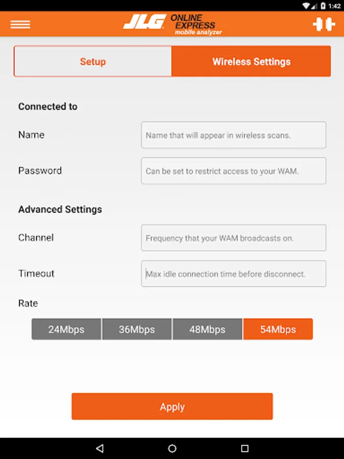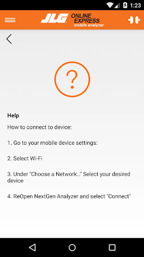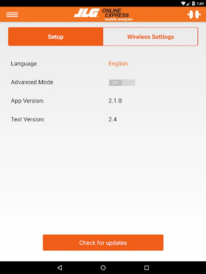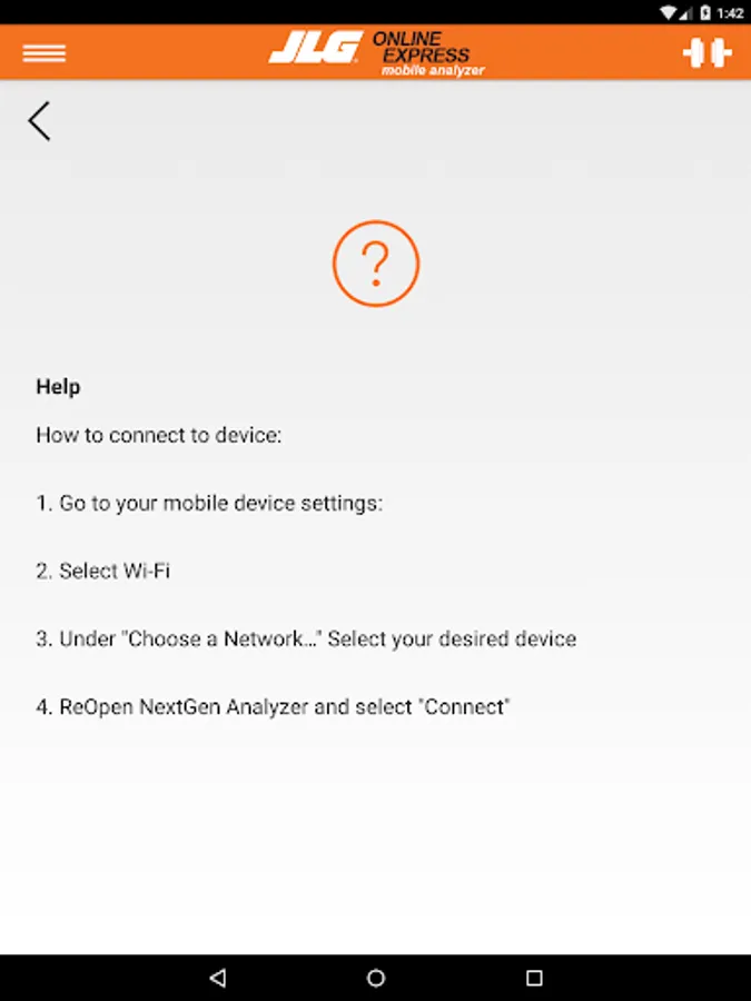 The JLG Mobile Analyzer is a Wi-Fi enabled evolution of the JLG Analyzer Kit (part number 2901443), developed for essential programming and troubleshooting of JLG equipment directly from your mobile device. Required for functionality is the JLG Mobile Analyzer Wireless Hardware (part number 1001147542), providing Wi-Fi access, which when connected to a wide range of JLG equipment will communicate with your mobile device.