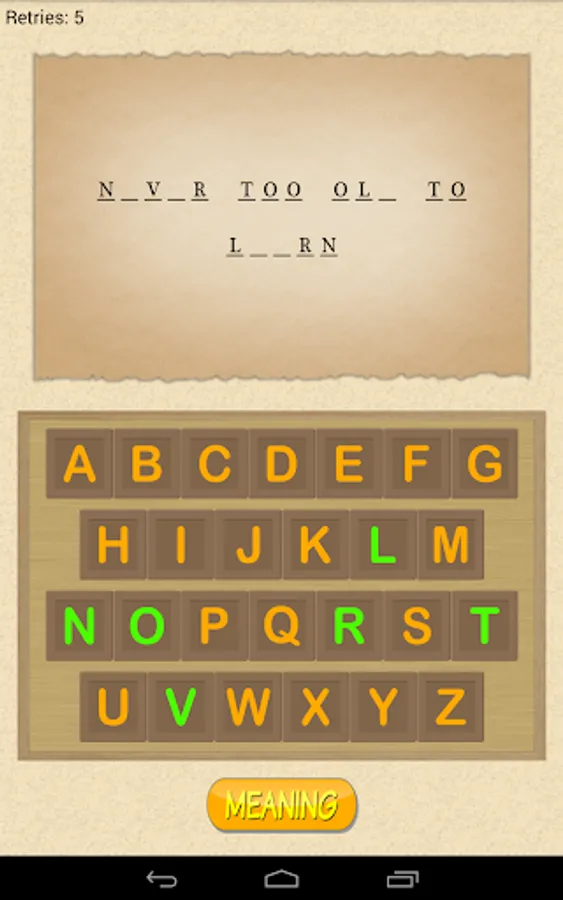 How many proverbs and idioms you have learned and memorized just by reading them boringly until you are knocked out? Play English Guess the Phrase, a classic Hangman game that will broaden your knowledge in proverbs and idioms in a fun way! More knowledge with English phrases will help a lot for you to understand on English literature/movies you read/watch! =)