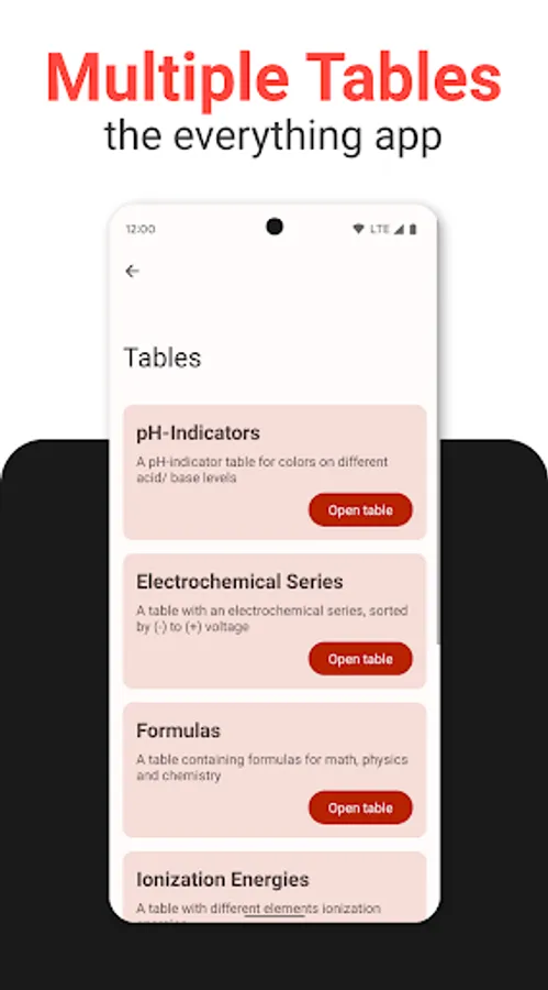 • Electrochemical Series – Easily view elements electrode potential