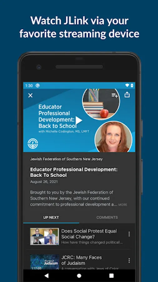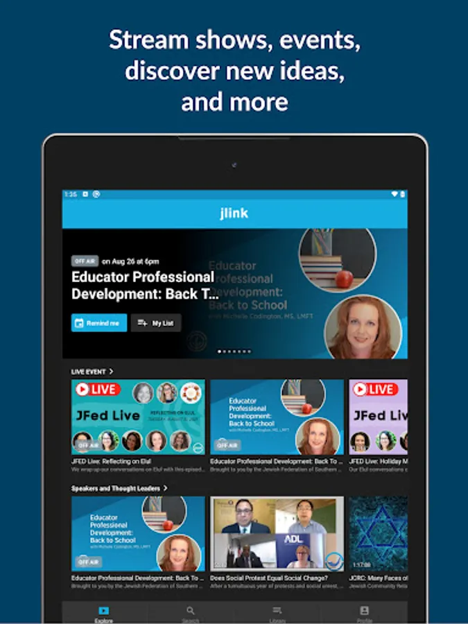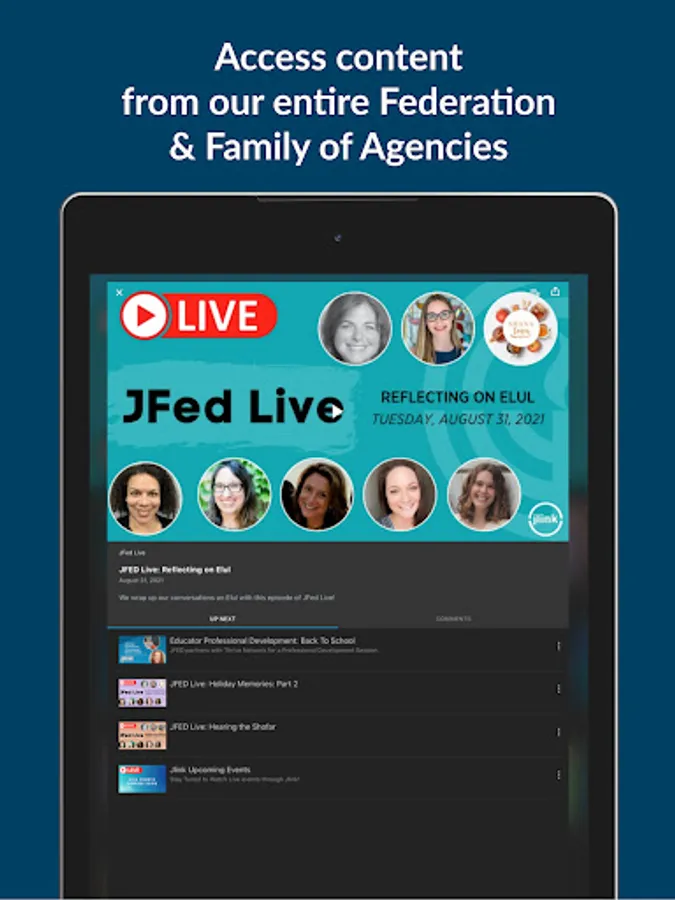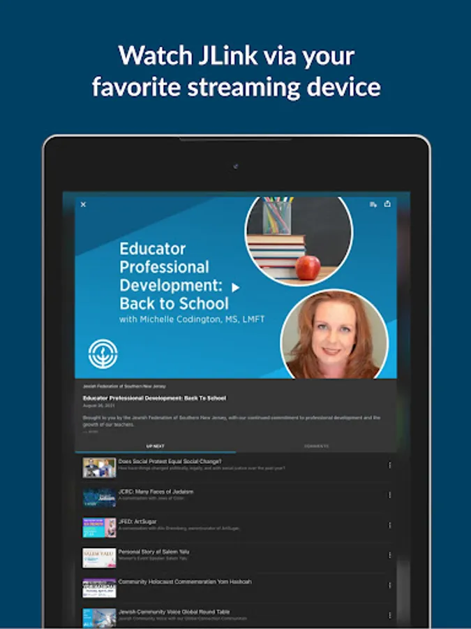 Enjoy content from our entire Federation and Family of Agencies all under one brand and one login: JLink is your connection to Jewish South Jersey! With the mobile app, you can experience JLink via your favorite streaming device in the comfort of your home or on the road. Wherever you are - JLink is your connection to the content that you and your family want to see.
