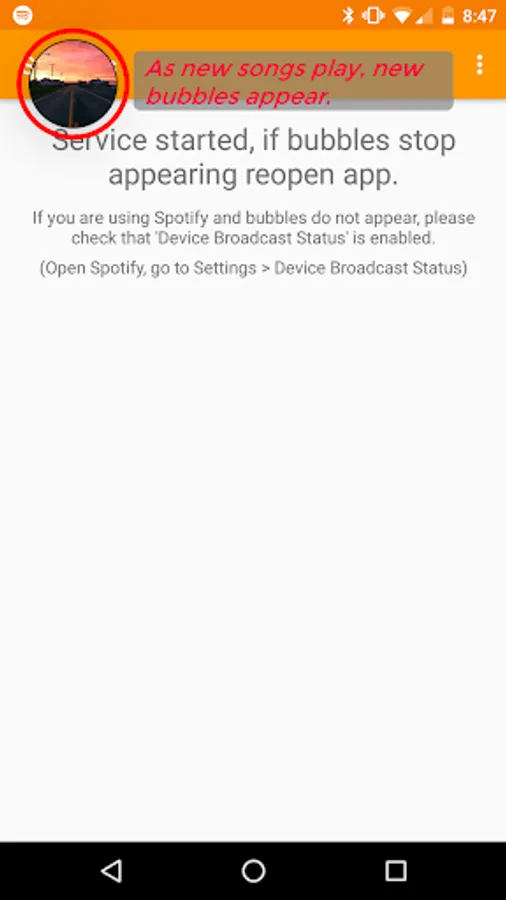 Ever wanted to see what a song was saying, but didn't want to go and look it up? With Spherics, now you don't have to! As you listen to a song, a bubble follows you around on screen that pops up with your lyrics when clicked. Perfect for singing along with friends or reading when you're bored, Spherics shows you lyrics in an instant, all while allowing you to continue doing whatever you want on your phone.