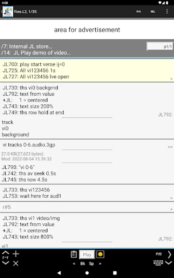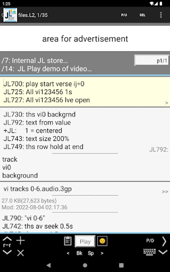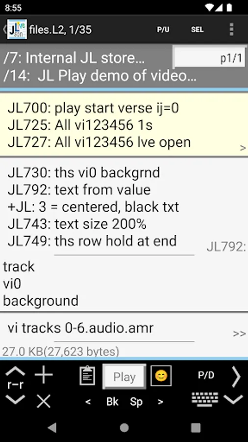 JL's built-in 12-track media player allows you to easily place voice over media, and to create slide shows and arrangements of media files stored on your device. These voice-overs and arrangements can be bundled into a single file to be exported and shared with other JL users.