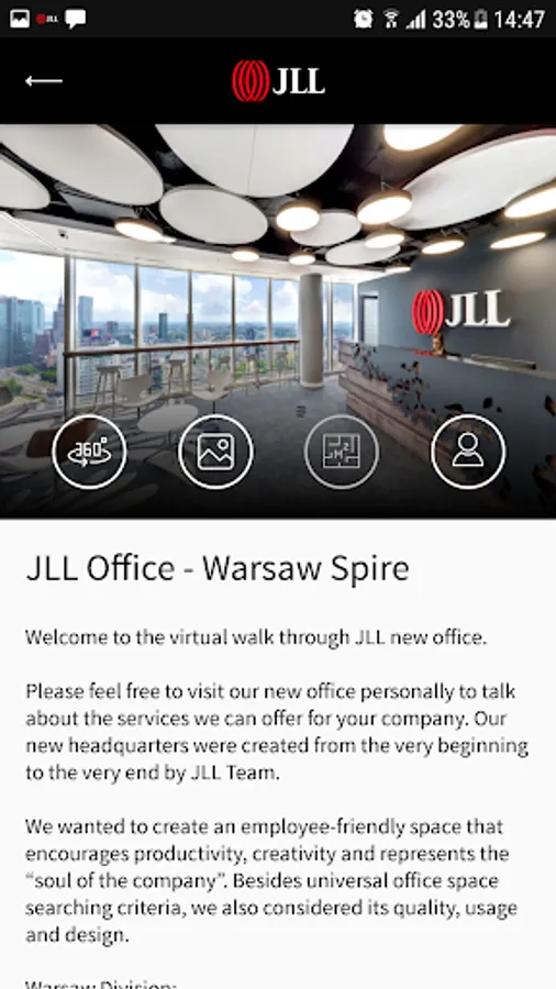 With our new app we invite you to take a virtual walk around some of the most interesting office buildings and see innovative designs. Visit JLL's new headquarters in Poland and get inspired!