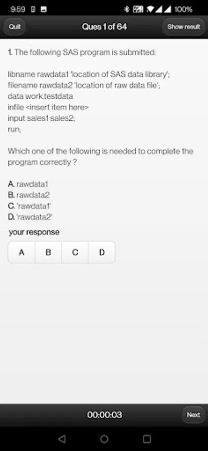This app can help you in practicing for Base SAS certification. To get more features please buy the Pro version of this app