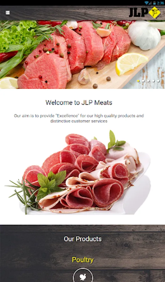 The app is aimed at providing valuable information about JLP Meats Ltd. and their services. It allows quick access to their Online shop and makes it easy for customers to contact JLP Meats, thanks to the built-in contact form.